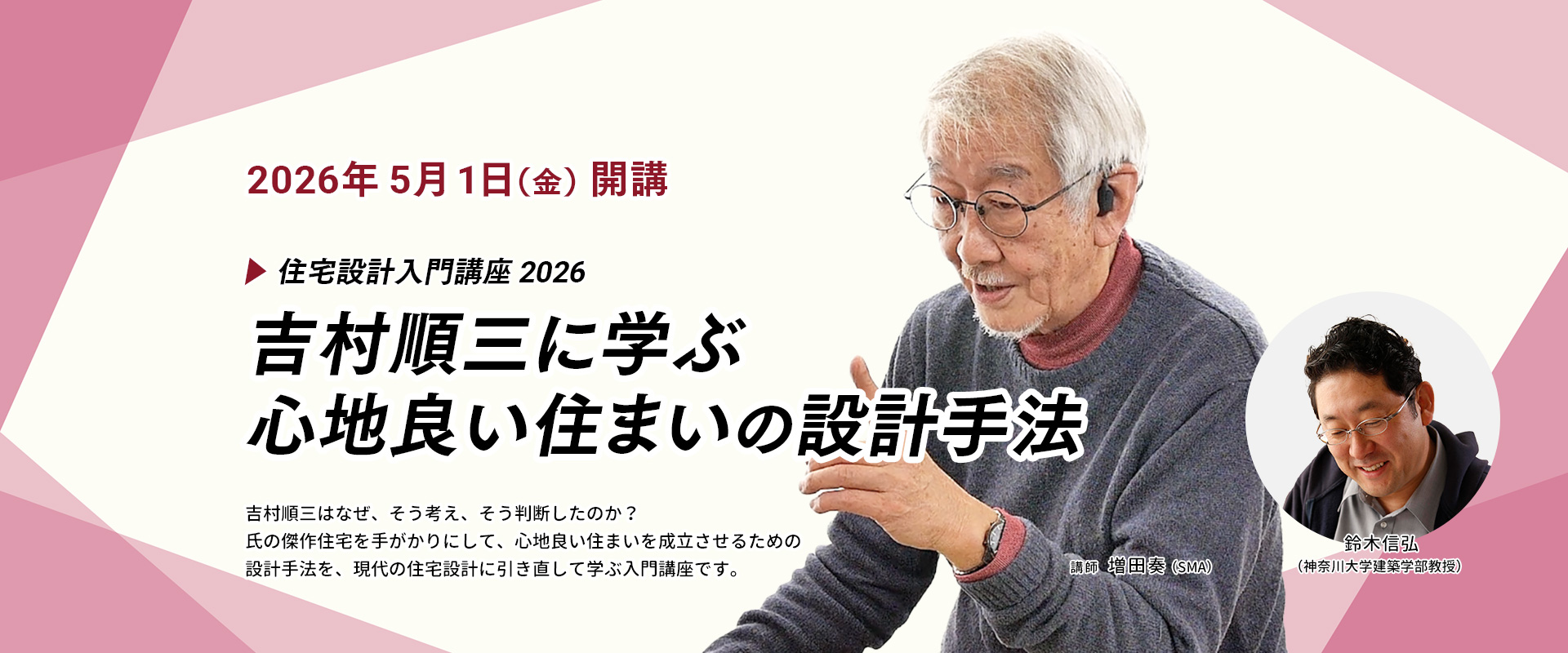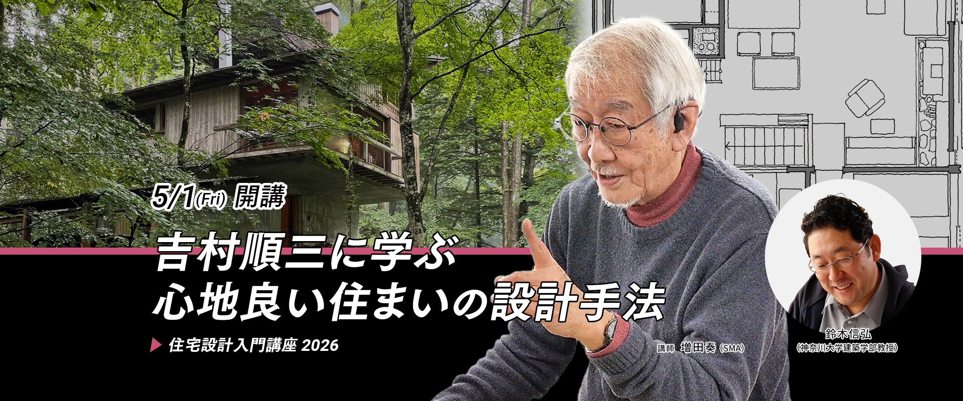 吉村順三はなぜ、そう考え、そう判断したのか? どこに重きを置き、何を優先し、何を手放すのか? 氏の住宅作品を手がかりに、心地良い住まいを成立させるための設計手法を、現代の住宅設計に引き直して学ぶ入門講座です。